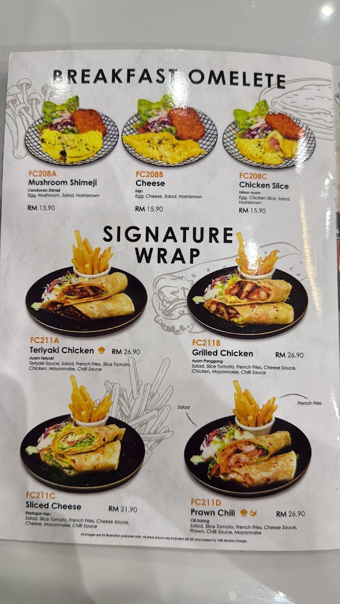 Toasted Ciabatta Bread, Grilled Chicken, Sliced Tomato, Sliced Cheese, Red & Green Coral, Mixed Raisins, Roasted Sesame Dressing, Chilli Sauce, Mayonnaise, French Fries