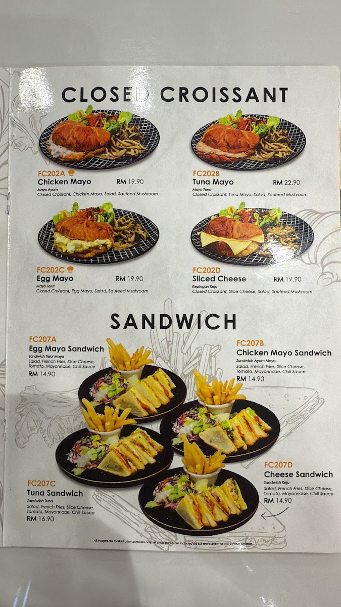 Toasted Ciabatta Bread, Tuna Chunks, Sliced Tomato, Sliced Cheese, Red & Green Coral, Mixed Raisins, Roasted Sesame Dressing, Chilli Sauce, Mayonnaise, French Fries